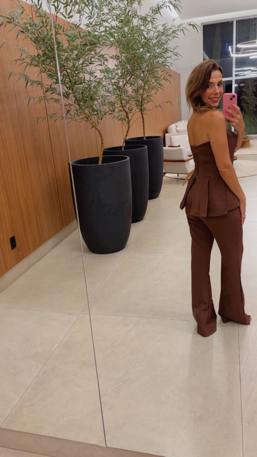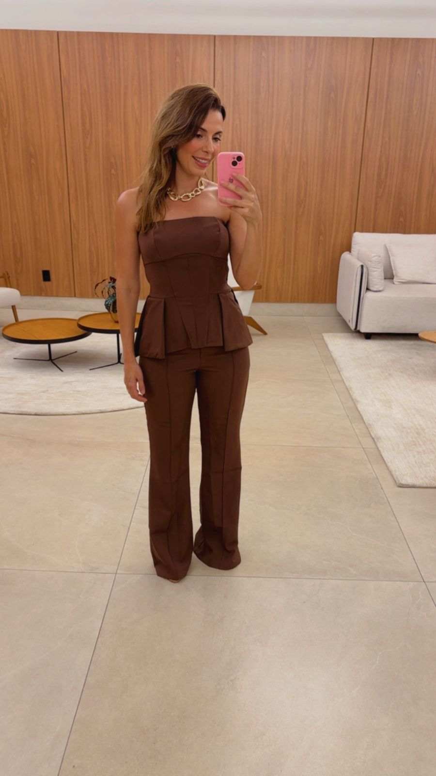 Confeccionado em tecido encorpado, alfaiataria leve.