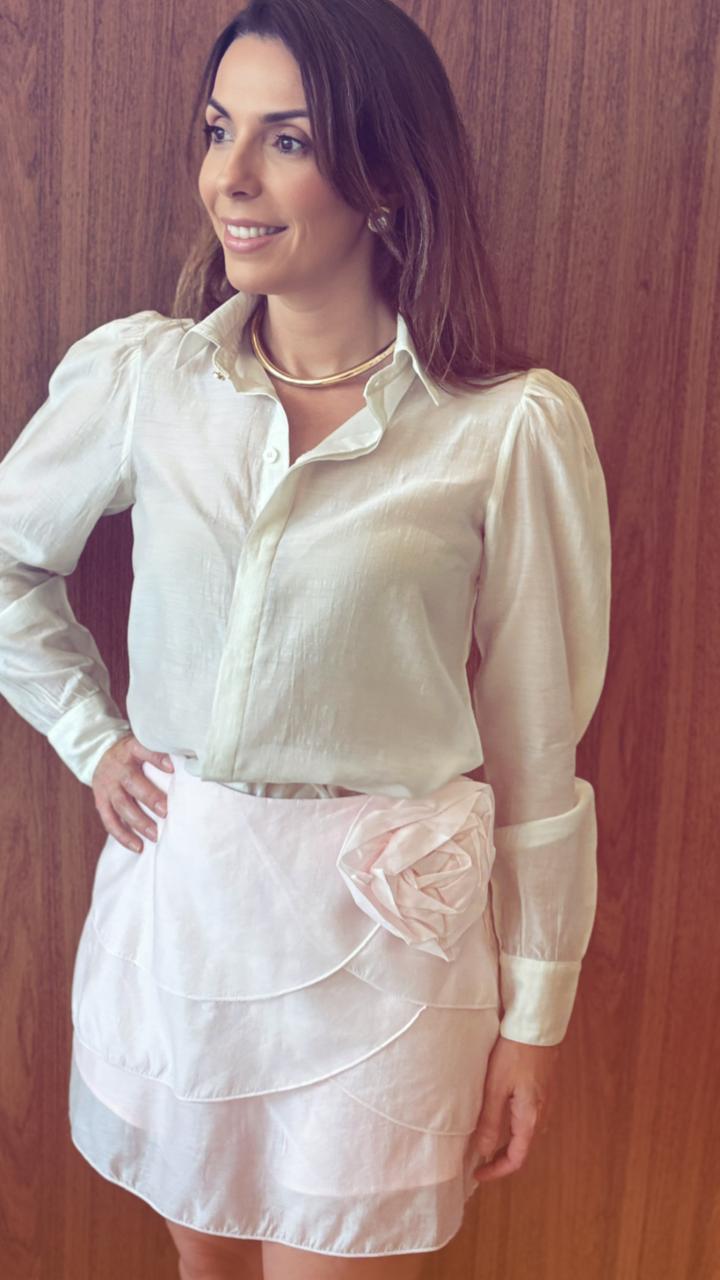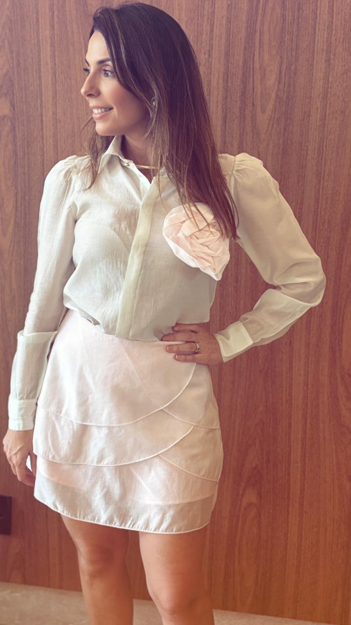 Short saia em organza de liocel, com flor removível.